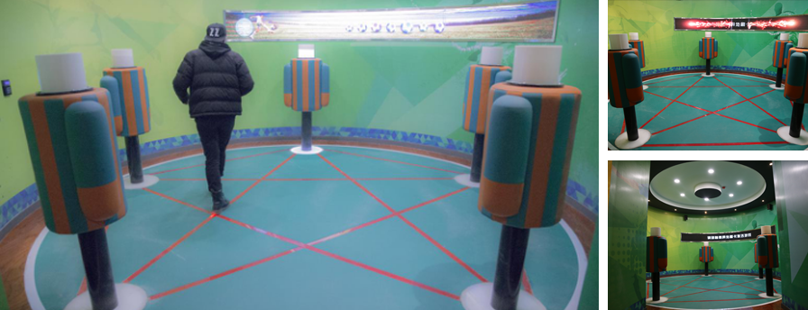項目名稱:臨淄足球博物館 完工時間:2015年 展示內(nèi)容:帶球過桿 交互形式:光感交互