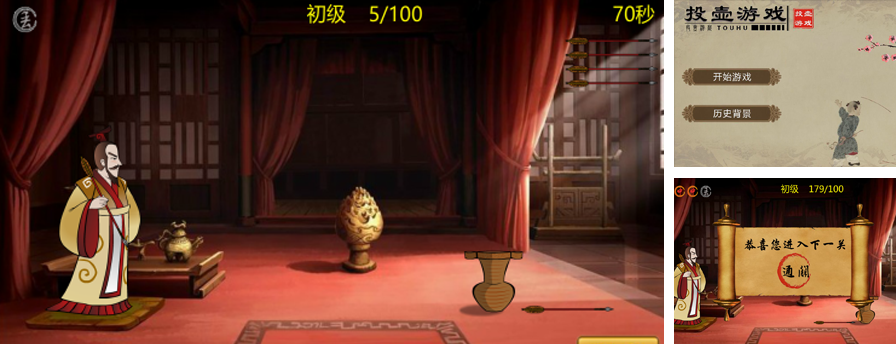 項目名稱:安康博物館 完工時間:2014年 展示內(nèi)容:復古投壺游戲 交互形式:觸摸交互